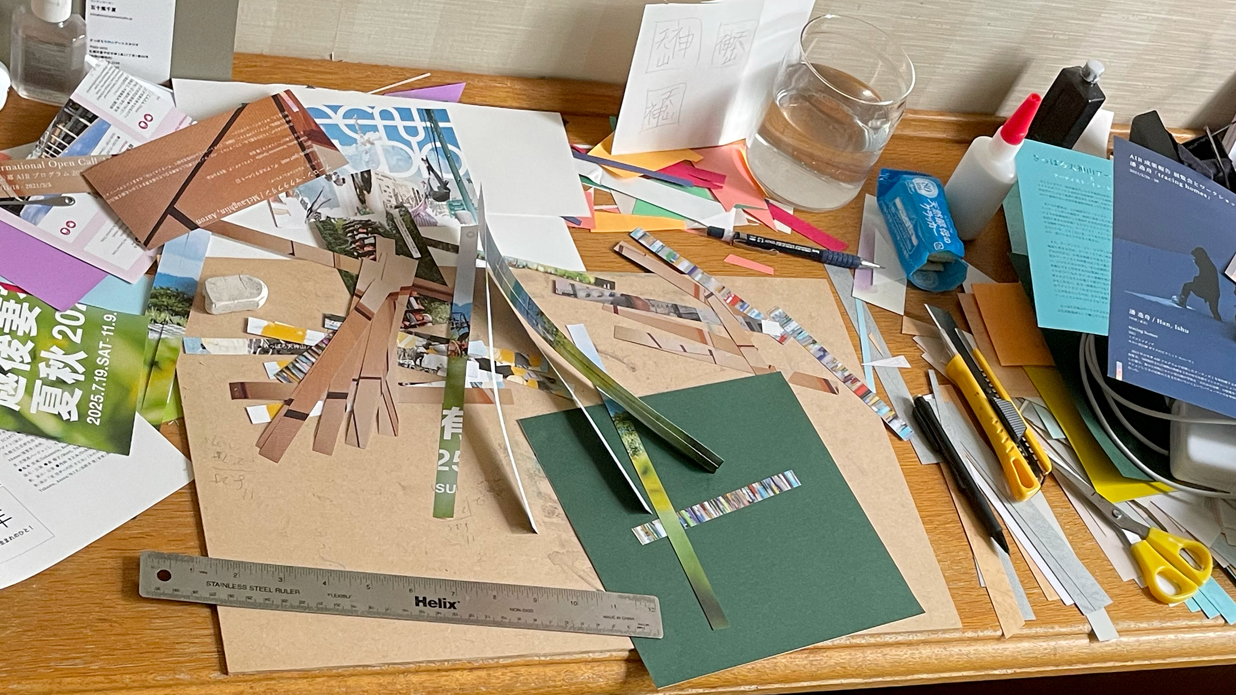 The pieces in this exhibition were created during my three-week artist residency at Sapporo Tenjinyama Art Studio in Japan. The idea of in-betweenness, often described as the experience of being situated between multiple cultural, societal, or temporal contexts, shaped both the themes and the processes behind this body of work. I was drawn to the komorebi effect produced by shifting light and leaves, the subtle vibration between printed images and hand-drawn marks, and the spatial dialogue created across two connected walls. The works on view reflect my visual experiments in observing and reinterpreting experiences in Sapporo through the lens of in-betweenness.