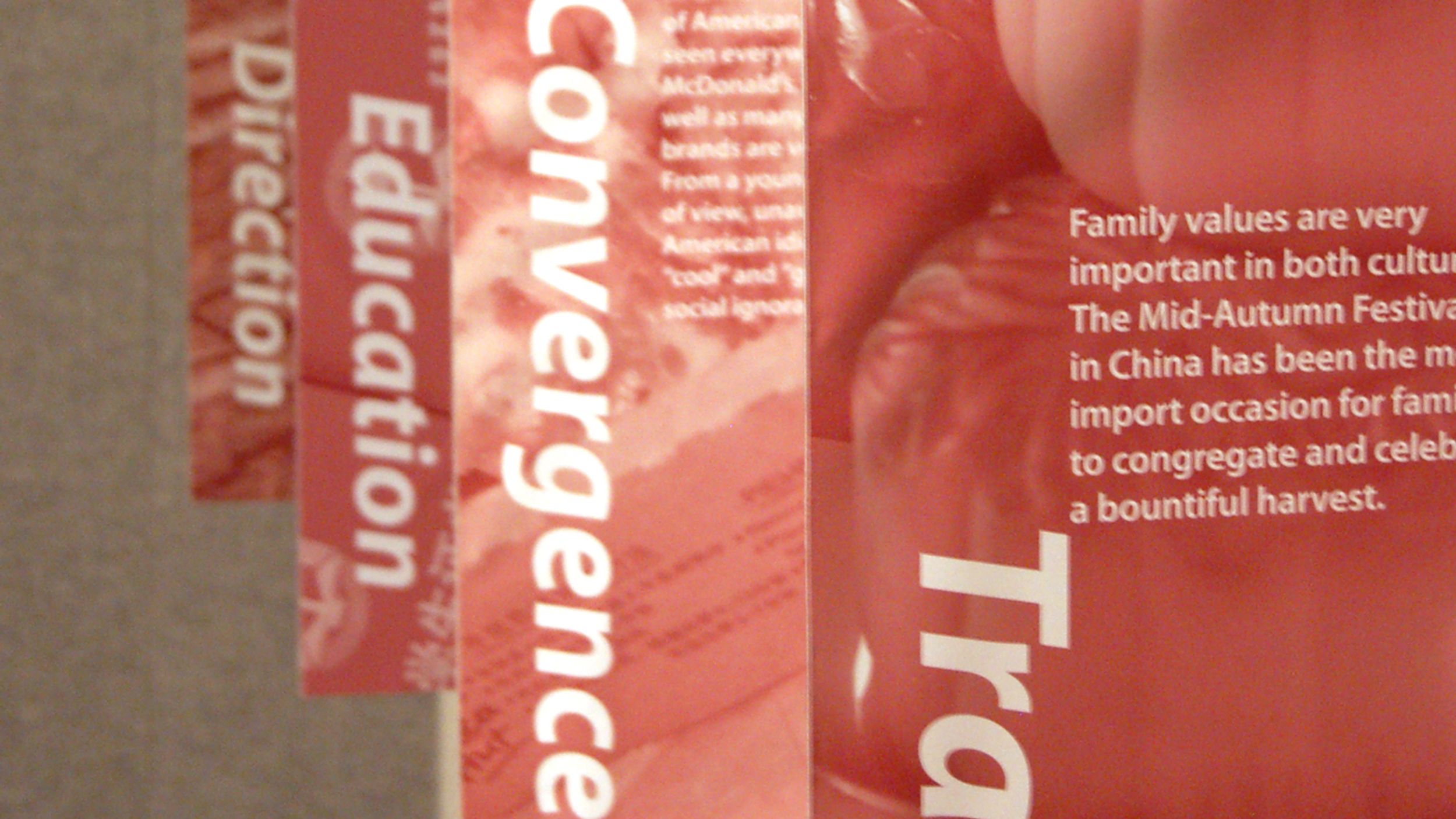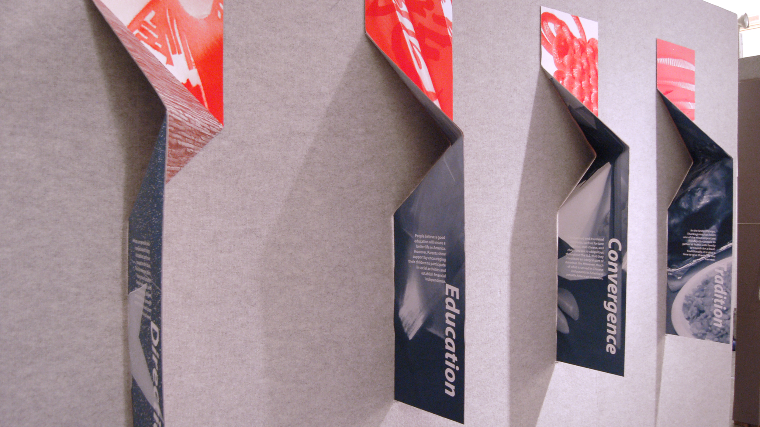 This project explores an understanding of our quickly emerging global culture through the examination of an interdisciplinary design approach. Three-dimensional forms and environmental design elements along with digital projection are utilized to explore new forms of visual communication.